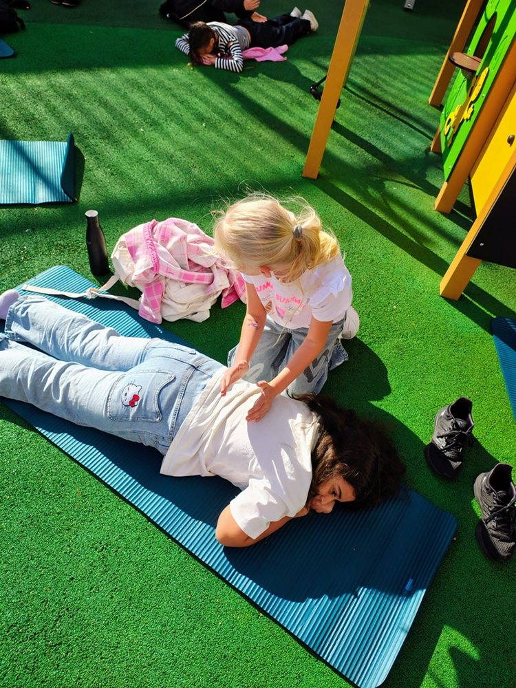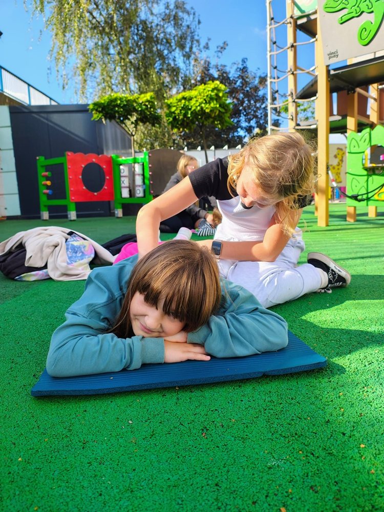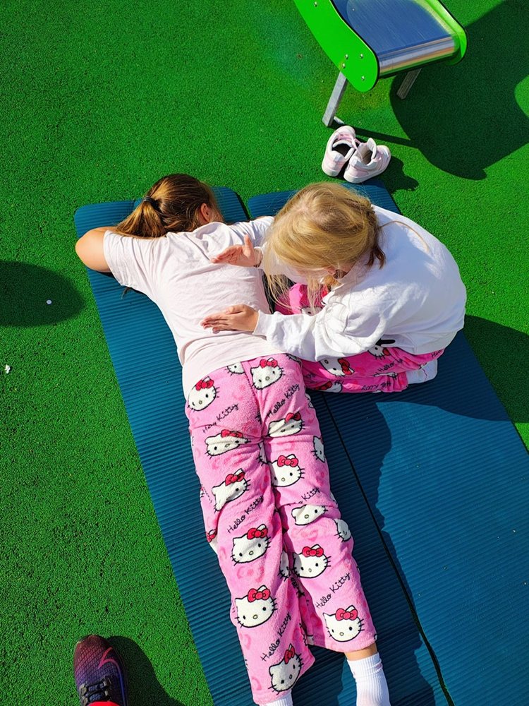Edukacja zdrowotna to swietny czas rowniez na relaks. Na ostatnich lekcjach uczniowie poznali techniki relaksacyjne i mieli okazje nauczyć sie podstaw masazu, dzieki ktoremu na twarzach pojawil sie usmiech.