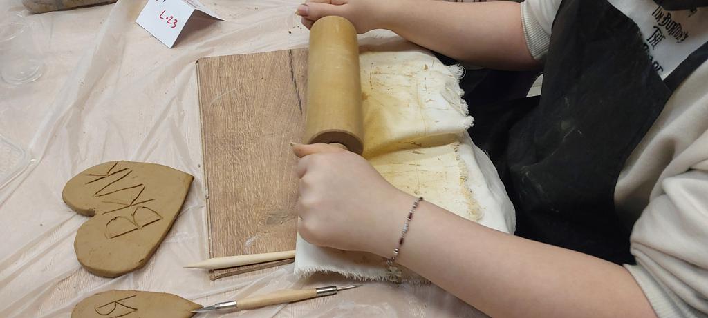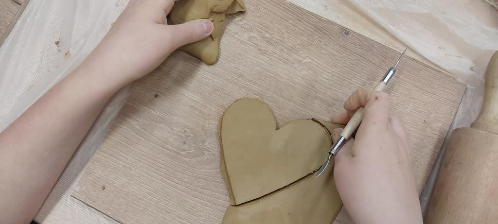 Zajęcia ceramiczno Rzeźbiarskiego. Dzisiaj tworzyliśmy serduszka dla naszych bliskich oraz tabliczki z numerami domów.
